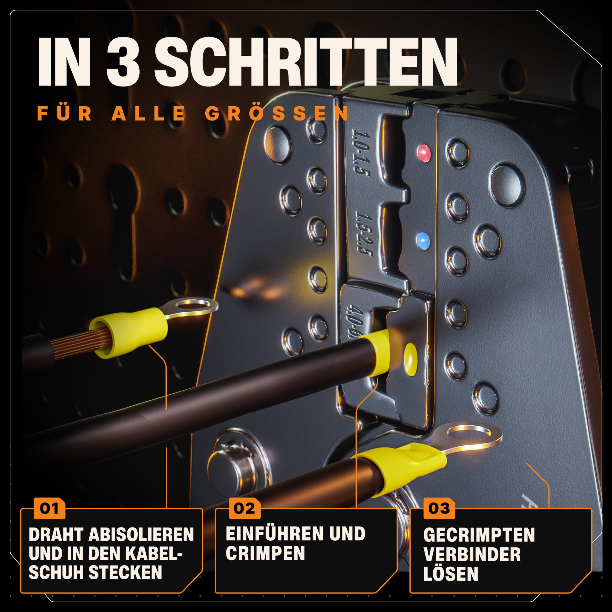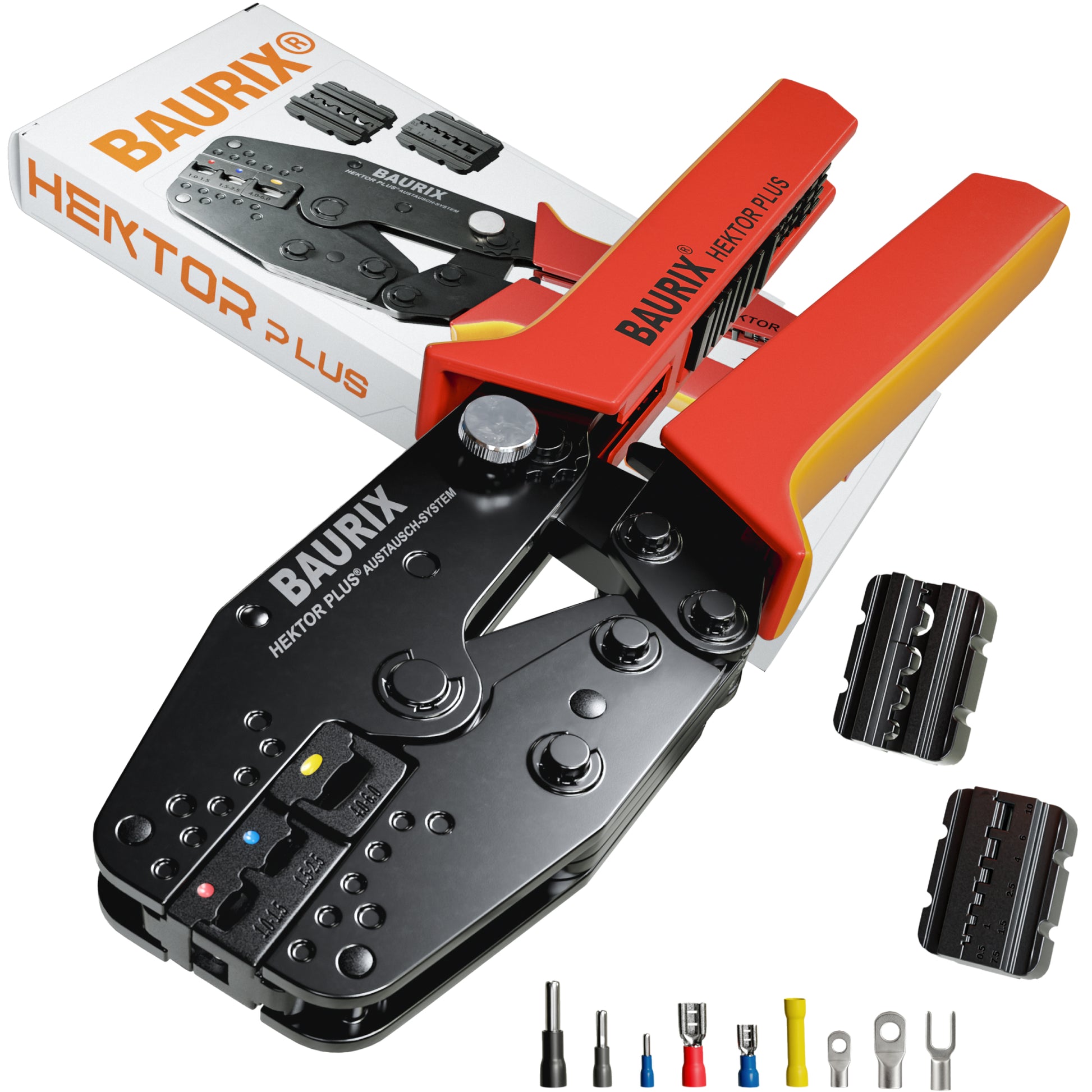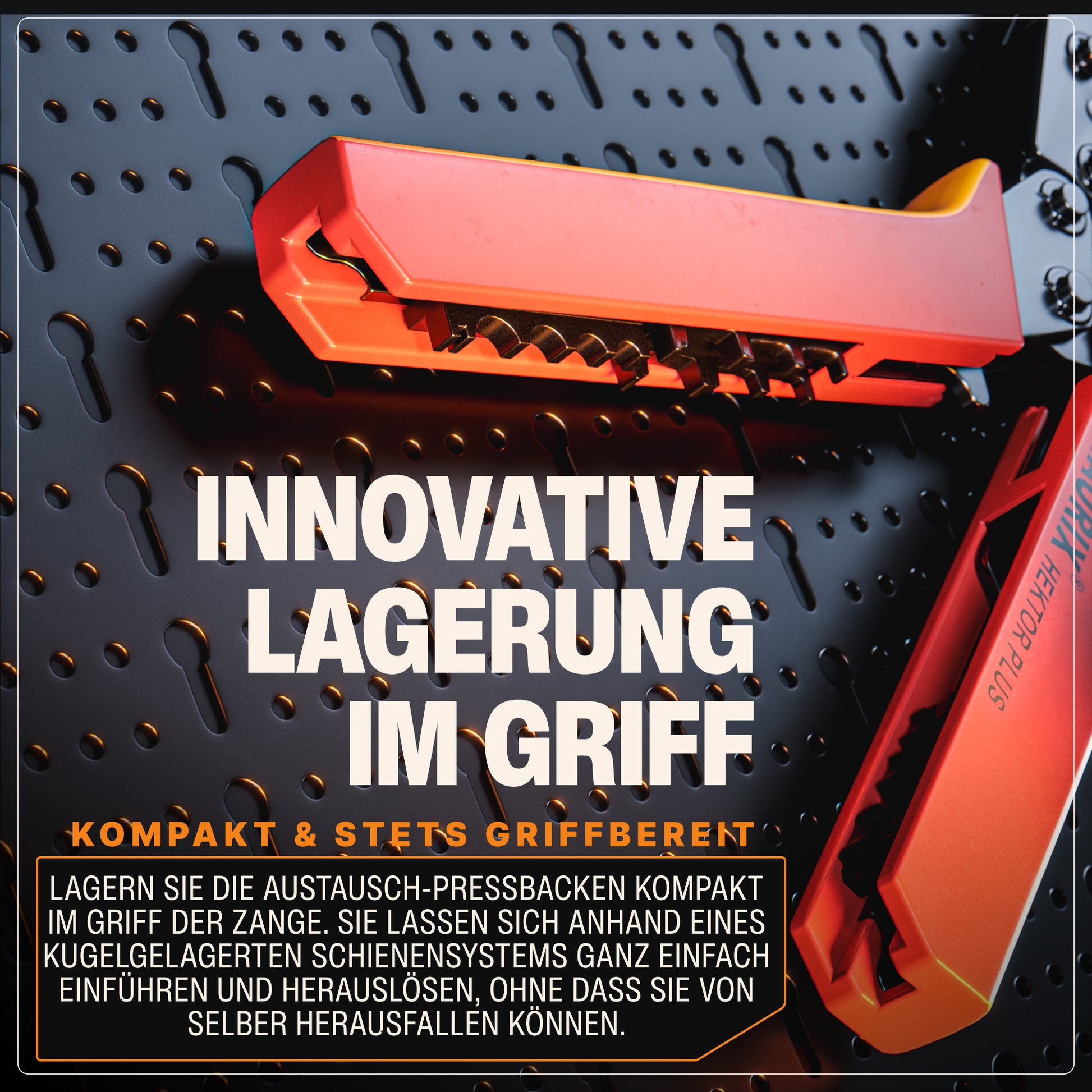 - Crimpzange Set mit 3 Wechselbacken und anpassbarer Presskraft.